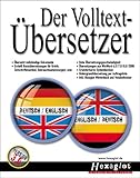 Komplette Texte bei einfachster Handhabung übersetzen lassen - mit dem Volltext-Übersetzer Englisch. Ideal für Geschäftsleute, Web-Surfer, Studenten, Journalisten und alle, die viel übersetzen. - Englisch/Deutsch - Deutsch/Englisch - Umfangreiches Systemlexikon mit rund 300.000 Einträgen - Inkl.